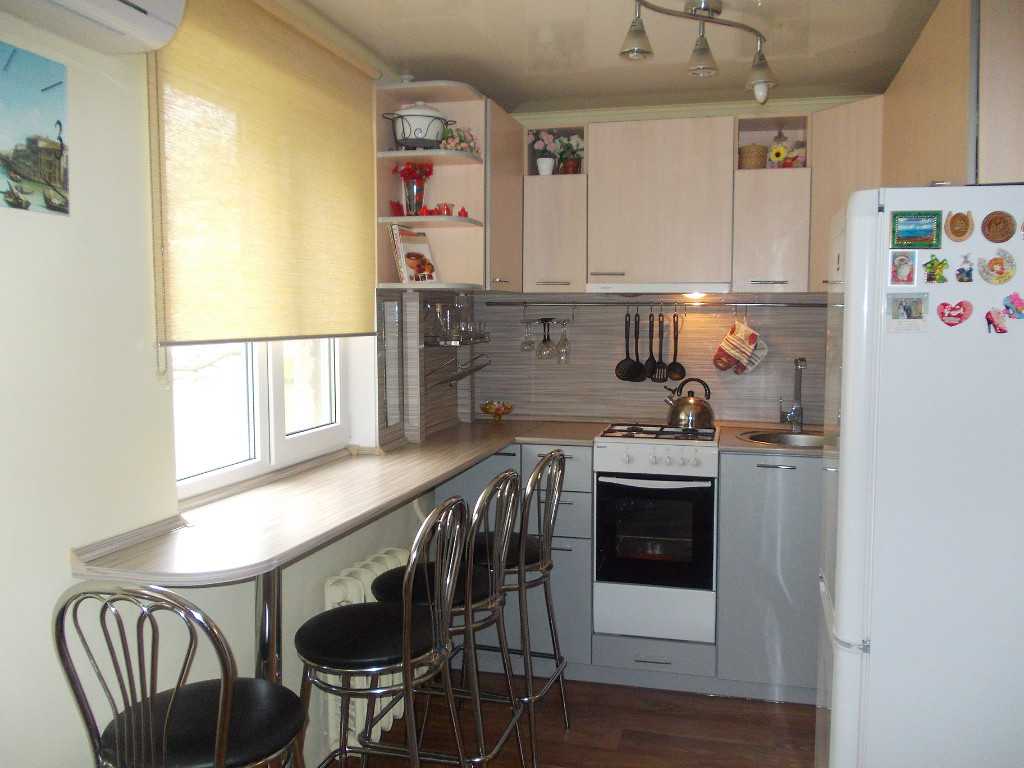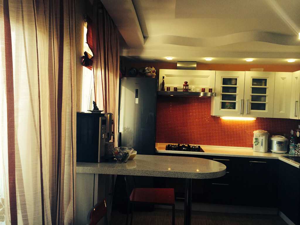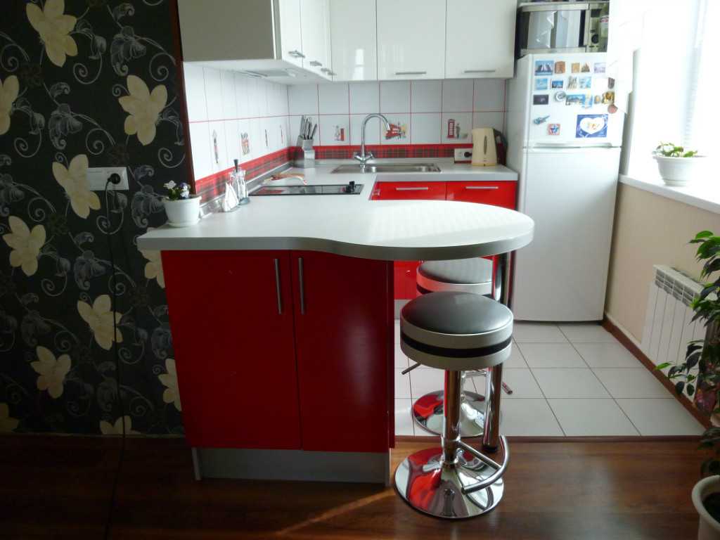 Впрочем, самой простой конструкцией барной стойки в небольшой кухне будет являться готовая столешница. Одним концом она может крепиться непосредственно к стене, в качестве опоры другого конца может использоваться готовая стойка, которые также продаются в магазинах строительных материалов.