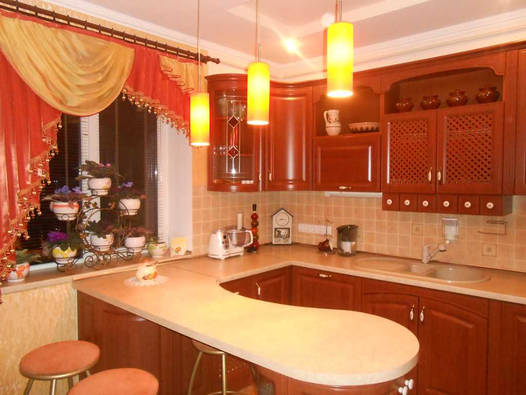 - В больших домах и квартирах в качестве элемента интерьера служит прекрасным помощником в вопросе зонирования кухни.