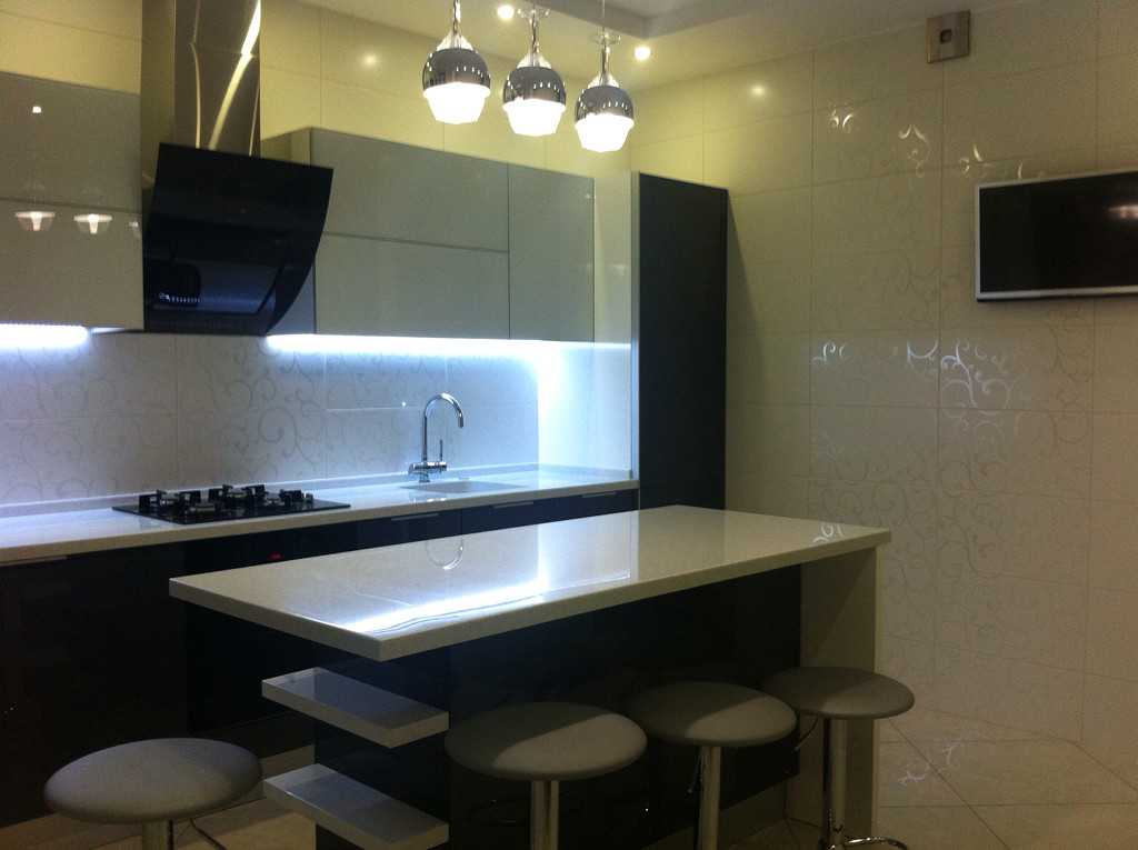 - Правильный подход в разработке дизайна барной стойки создает на кухне атмосферу легкости и непринужденности.