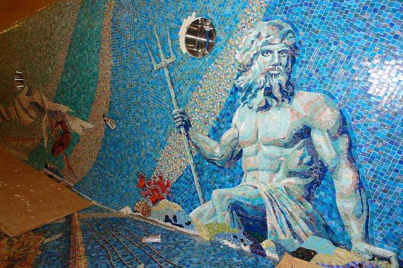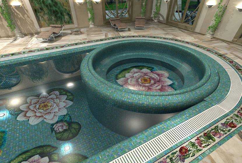 Мозаичное панно на стенах и днище бассейнаИсточник galamosaic.ru