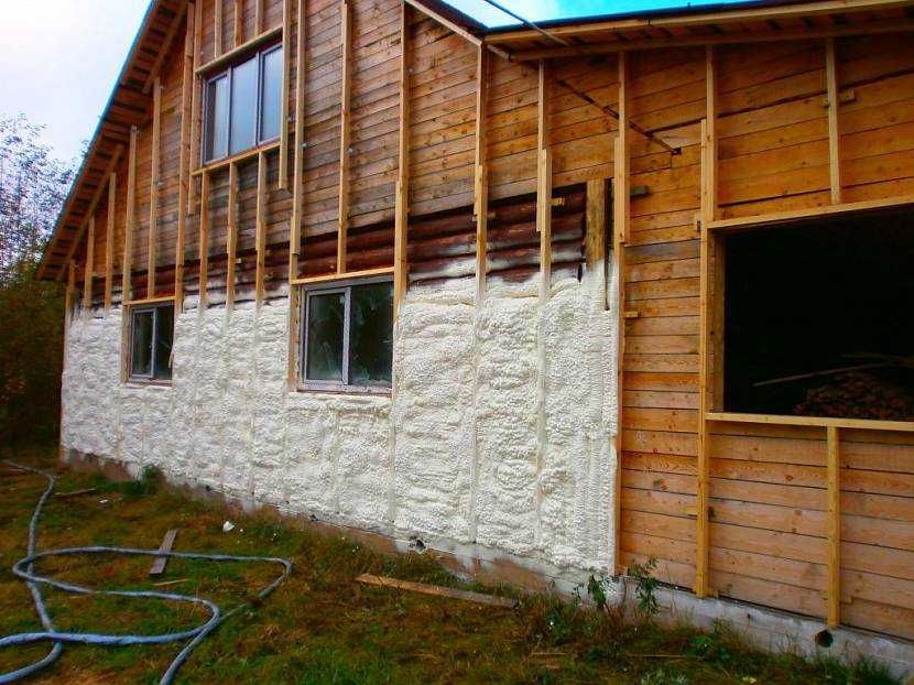Высокая плотность утеплителя не дает возможности воздуху проходить через нанесенный слой. И даже при таком положении дел вспененный полиуретан используется для утепления дома из бруса снаружи под сайдинг, вагонку или другой отделочный материал достаточно часто. Причина – отличные показатели теплопроводности и огнестойкости, плюс простота нанесения.