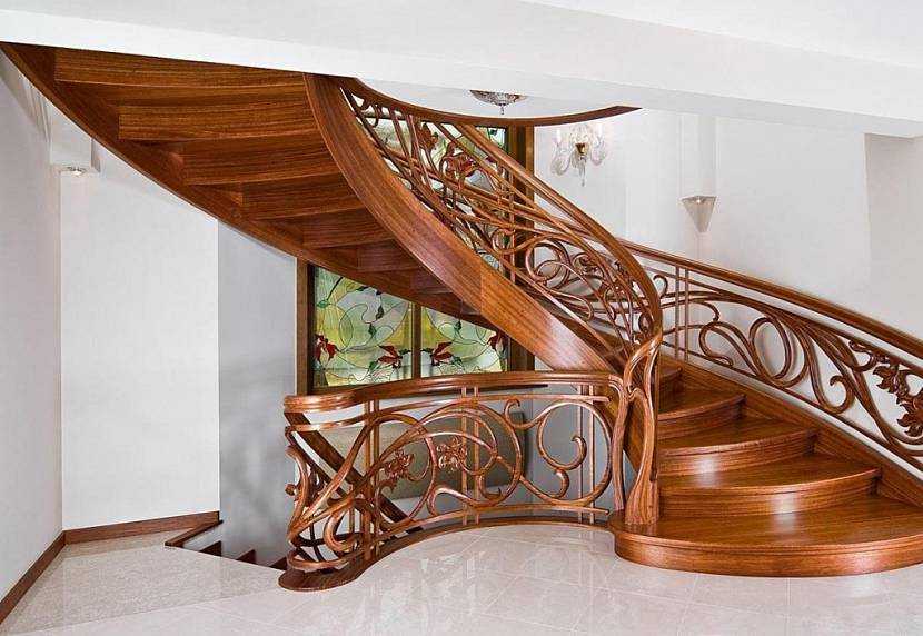Ограждения лестниц из разных пород дерева (с фото)
