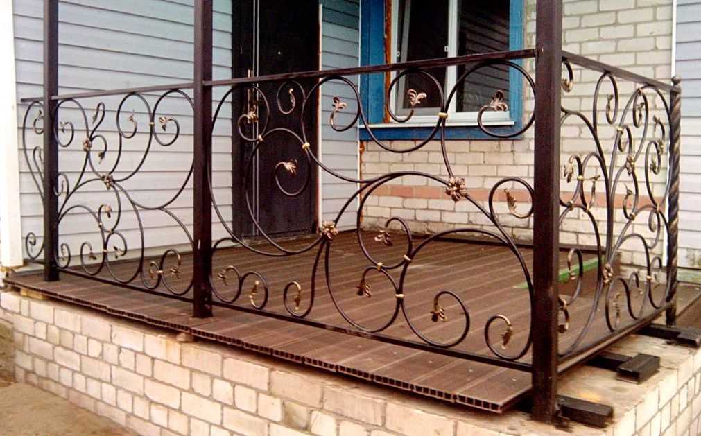 Также, готовым вариантом являются кованые ограждения для террасы. Подобное изделие довольно дорого, однако, является настоящим произведением искусства. Кованные перила делаются как под заказ по разработанным чертежам и эскизам, так и продаются уже готовыми, в виде типовых решений.
