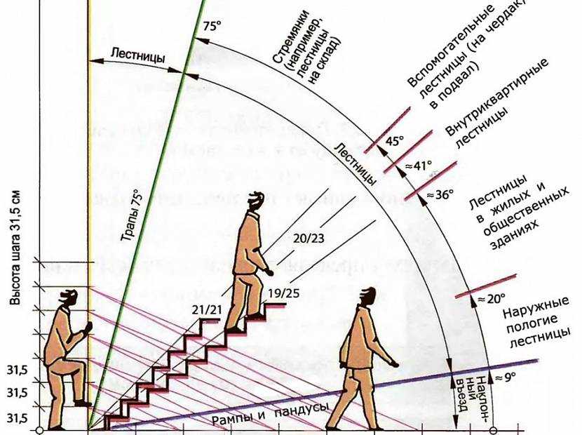 Оптимальный угол наклона лестницы – 45°Источник dekormyhome.ru