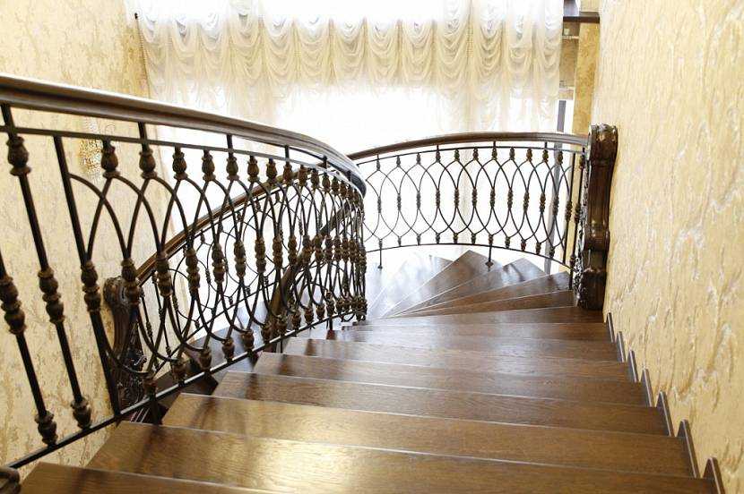 Если в доме живут маленькие детки или домашние животные для большей безопасности устанавливаются сплошные панели. Они тоже крепятся к балясинам. Эффектнее всего смотрится узорчатое заполнение. Оно изготавливается чаще всего из металла, методом художественной ковки. Несмотря на массивность, лестницы, украшенные такими элементами, становятся лёгкими и воздушными.