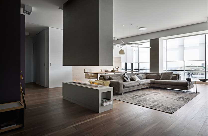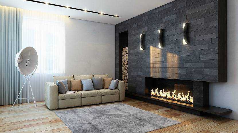 Для современных минималистичных интерьеров многие выбирают имитации очага, работающие от электричества. Особенно актуальны сейчас варианты, застекленные с двух или трех сторон. Подобный дизайн в стиле хай-тек отлично вписывается в лаконичную обстановку современного дома, но при этом такой очаг позволяет создать атмосферу уюта. С камином современный интерьер никогда не будет казаться холодным и скучным, даже если в нем преобладают сдержанные формы и светлые тона.