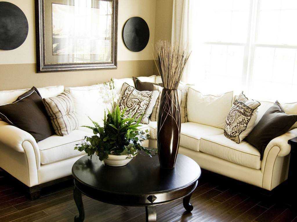 Самое популярное решение в плане выбора цвета для среднего размера гостиных, как и наш вариант, — это белый и бежевый. Такая расцветка успокаивает, а так же делает помещение комнаты просторнее и гораздо светлее.