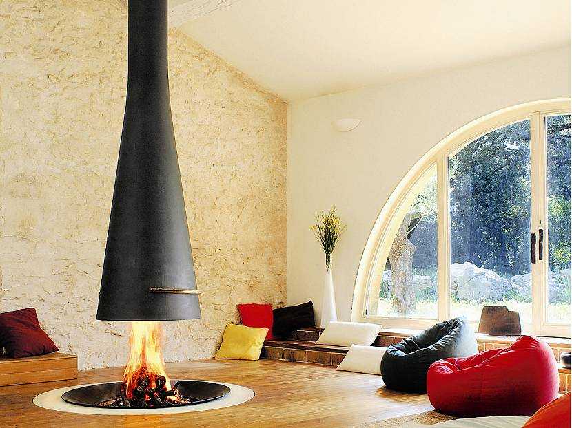 Эффектные подвесные камины традиционны для современных скандинавских интерьеров. Такие модели изготавливаются из металла.