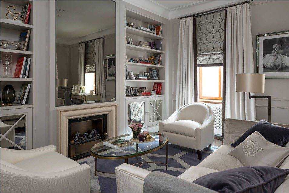 Наконец, именно светлые цвета визуально расширят пространство, что очень кстати для небольшой гостиной с камином.
