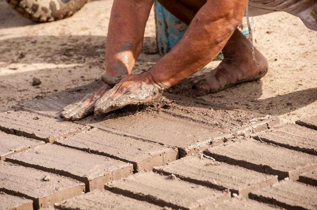 В качестве одного из важных компонентов выступает глина. Наполнителем может быть солома, древесная стружка, гравий, песок, сухая трава и цемент. Глина должна быть чистой, прочной, пластичной и без примесей. Для того чтобы проверить, подходит ли она, ее следует развести водой и скатать шарик. Если при высыхании он не покрылся трещинами и не разбился при падении с высоты 2 м, то глину можно использовать. На 1 000 изделий уйдет примерно 10 м3 сырья.