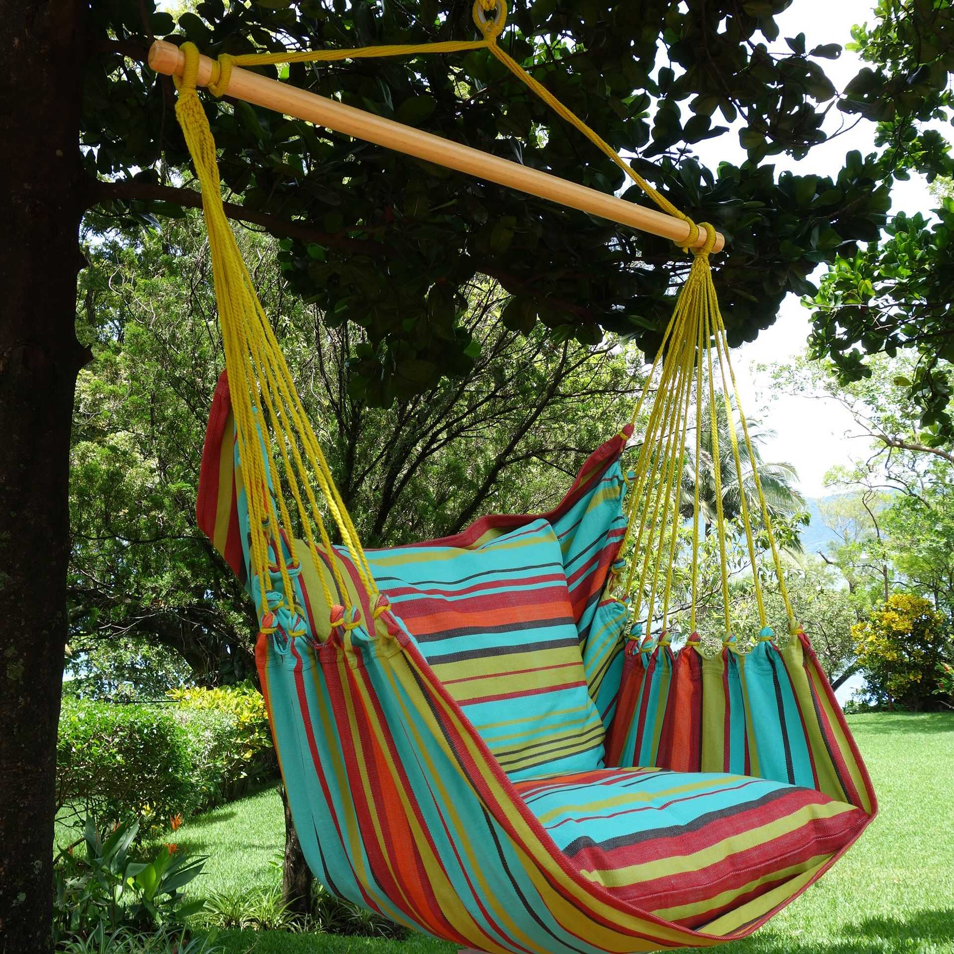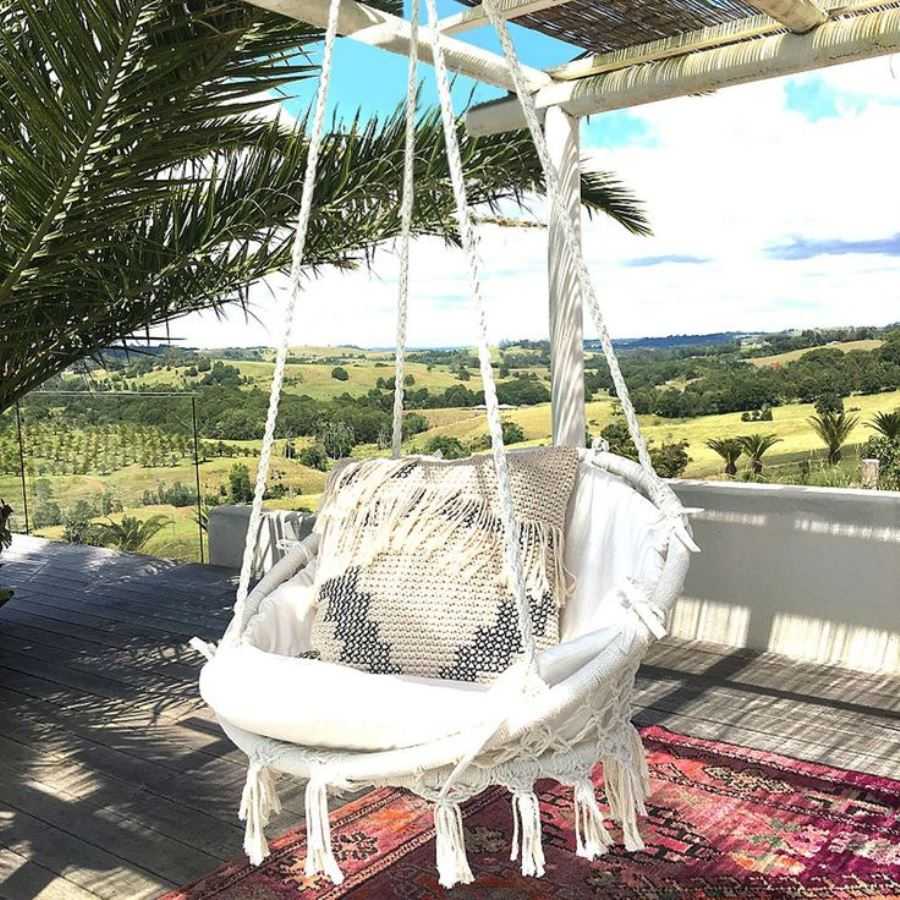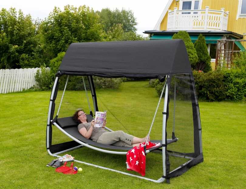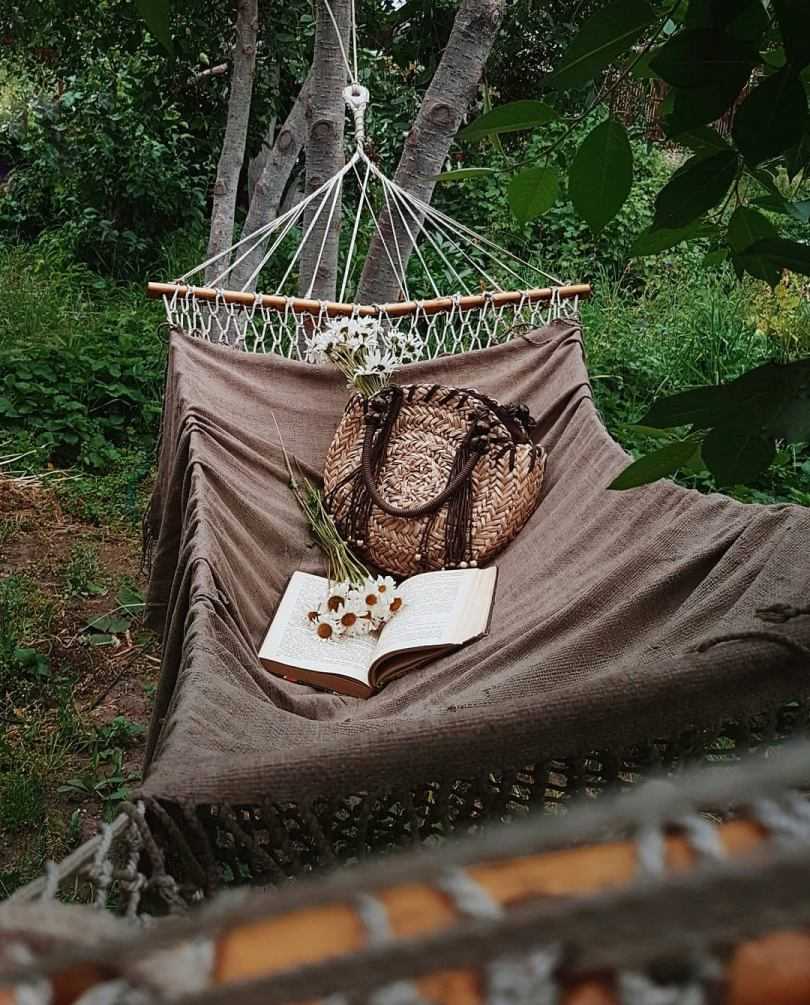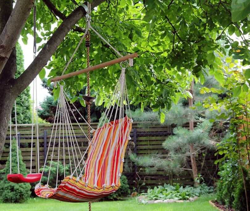 Кресло — оригинальная альтернатива классическому виду гамака. В такой модели можно не просто праздно проводить время, а делать что-то полезное. Например, читать книги или работать за ноутбуком. Может быть, теплым летним вечером, слегка раскачиваясь в кресле-гамаке, вы вдохновитесь настолько, что будете не просто читать чужие произведения, а напишете собственное.