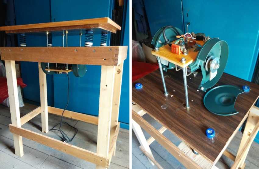 Также понадобится пластина для установки электрооборудования и пружины, которые и призваны обеспечивать вибрацию. Приобрести эти элементы вполне возможно на авторазборке. Многочисленные отзывы свидетельствую о том, что идеальный вариант – использование пружин с мопедов, стоимость которых при высоте 113 мм и диаметре 54 мм будет около 500 рублей. Их устанавливают в углах стола, а при большой площади поверхности еще одну дополнительно монтируют по центру.