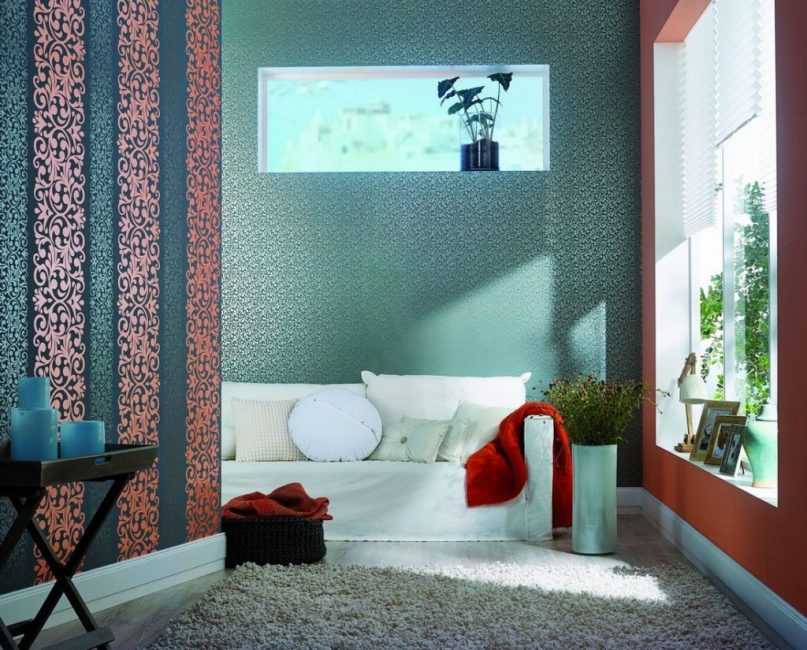 Сочетание нескольких видов обоев на одной или смежных стенах позволяет реализовать сразу несколько эффектов: