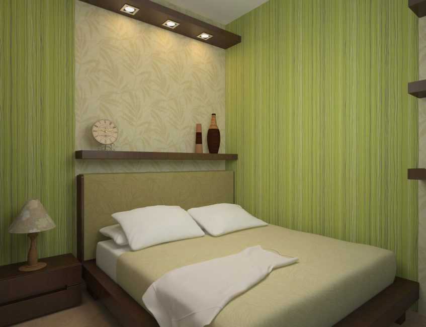 Самый удобный способ реализации задумки поклейки обоев двух видов в спальне – декорирование ниш, перегородок и выступов