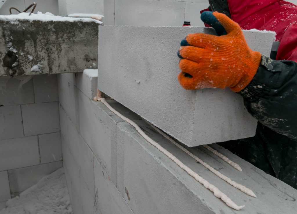 При решении вопроса, можно ли строить зимой, профессионалы допускают возведение конструкций из блоков при минусовых температурах.