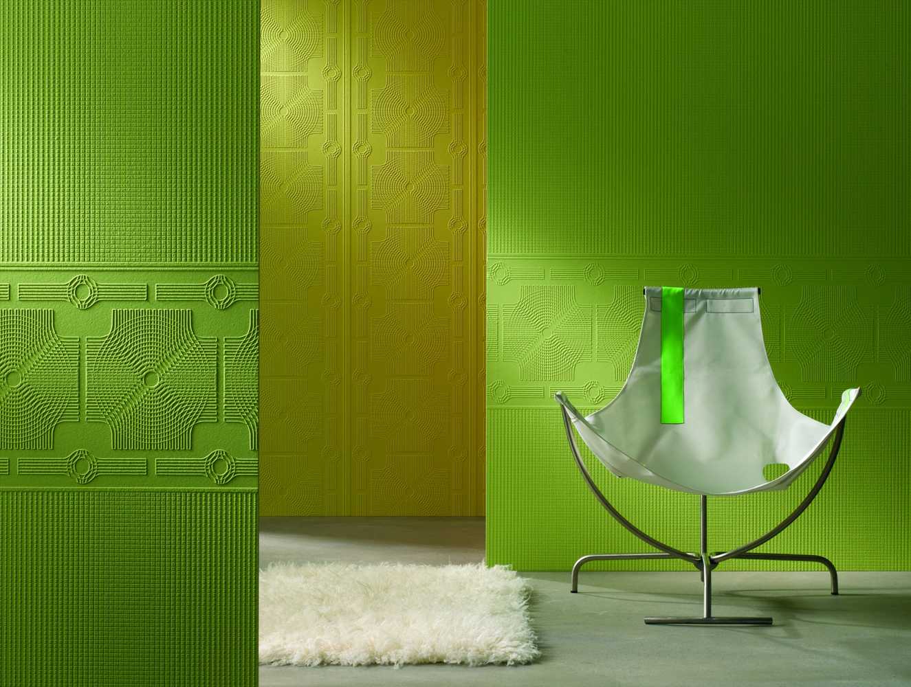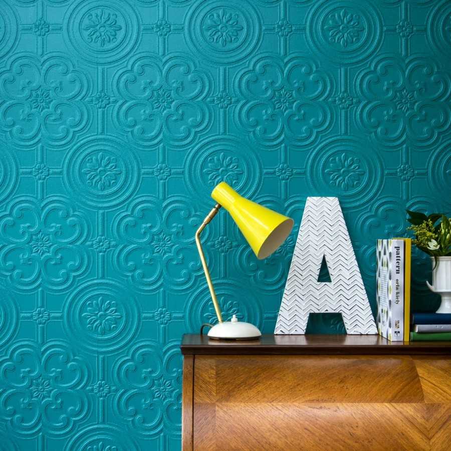 - помимо покраски наружного слоя, можно окрасить и внутреннюю сторону виниловых или флизелиновых обоев. Это выделит рельефность и рисунок покрытия. А если перед наклейкой обоев покрасить стены в яркие цвета, то это придаст матовости готовому результату.