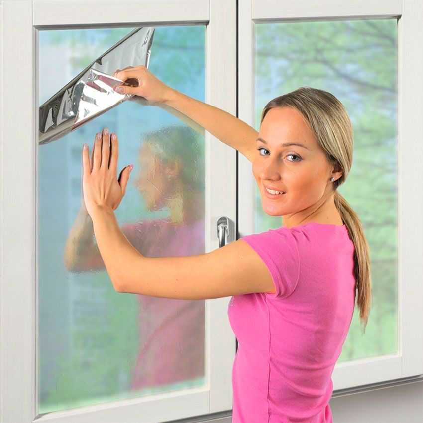На заметку!Монтаж обычно начинают с подготовки поверхности и раскроя светоотражающей пленки для окон. Чтобы получилось цельным куском полностью закрыть оконное стекло, берут кусок, размеры которого на 2-3 см превышают параметры стекла.