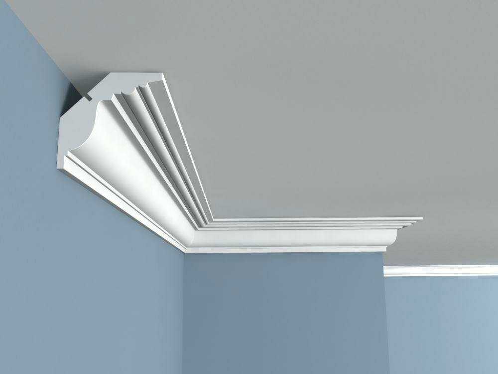 Стандартная длина плинтуса 2 м, а его ширина варьируется от 1 до 40 см. Выбор ширины потолочного плинтуса зависит от параметров помещения и его конфигурации.