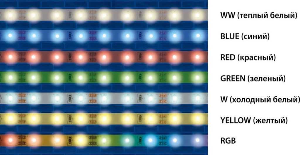 Бывают одноцветные и многоцветные виды. Они отличаются не только по цветности, но и по сроку службы. Одноцветное освещение бывает — белого, желтого, красного, синего, зеленого цветов. Многоцветные ленты могут менять свой цвет, они управляются с помощью пульта, на котором есть несколько программ. С его помощью можно выбирать и включать отдельные цвета или программы, с помощью которых меняются цвета в определенной последовательности и с разной длительностью и мощностью свечения. Количество программ и цветов зависит от модели и стоимости ленты. Многоцветные ленты могут продаваться в наборе с контроллером и блоком питания или без них. Если набор неполный, то дополнительные устройства необходимо купить в специальном магазине, проконсультировавшись со специалистом. При покупке контроллера и блока питания необходимо учесть параметры ленты, иначе контроллер быстро выйдет из строя, а блок питания просто не будет работать.