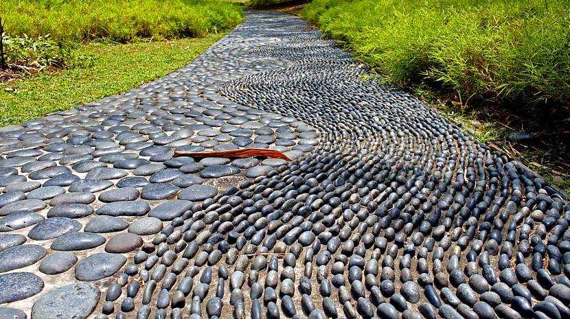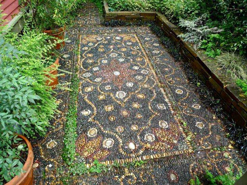 Дорожка из крашеной и естественной гальки с рисункомИсточник polonsil.ru