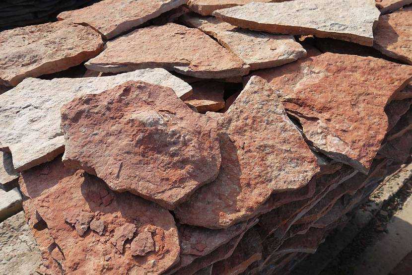 В заблуждение вводят штабеля песчаника красновато-бордового цвета, являющегося абсолютно рыночным продуктом, рассчитанным на то, что клиента привлечёт цвет, полученный в результате обжига все того же обычного песчаника. Красновато-бордовый цвет — результат обжига обычного песчаника. Фото Надежды Журовой