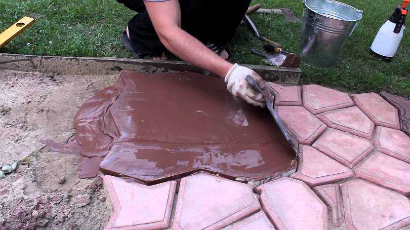 - Изготавливаем камень: добавляем в цементный раствор краситель и заливам в форму.