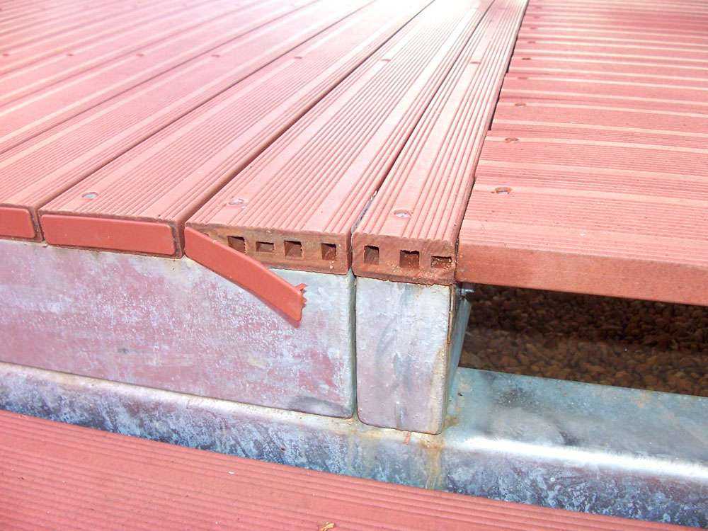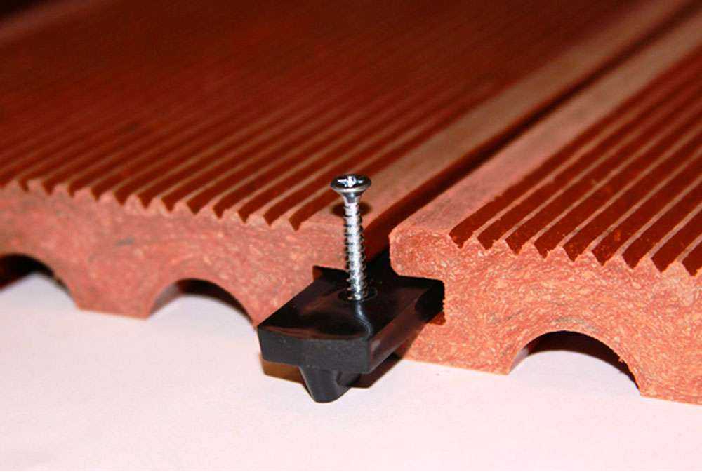 - Замковый. Для такого варианта, у некоторых видов декинга имеется специальный паз, который позволяет крепить доску к лагам при помощи специальных клипс.