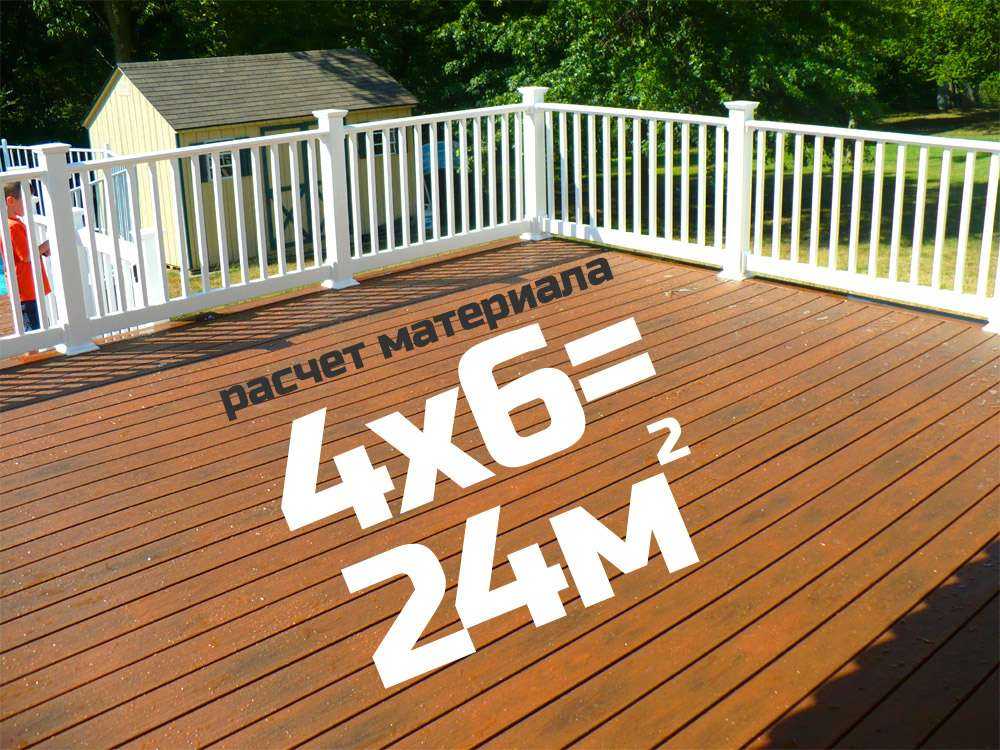 Производители обычно указывают стоимость террасной доски за 1 квадратный метр, что очень удобно для приблизительного расчета. Площадь нашего пола — 24 м2, что дает нам возможность предварительно оценить затраты на террасную доску.