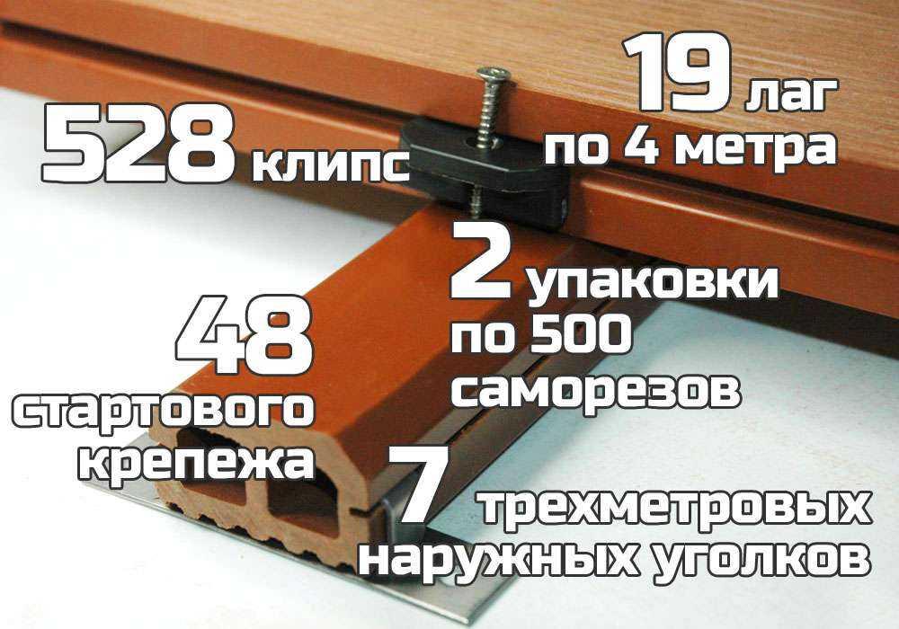Размеры доски террасной непосредственно влияют на ее цену. Также нужно учесть стоимость клипс, лаг и прочего.