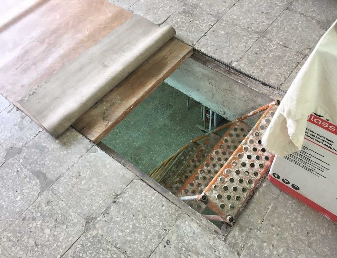 - Снимается верхний плодородный слой, пол углубляется на 30-35 см от нулвой отметки на штукатурке стен.