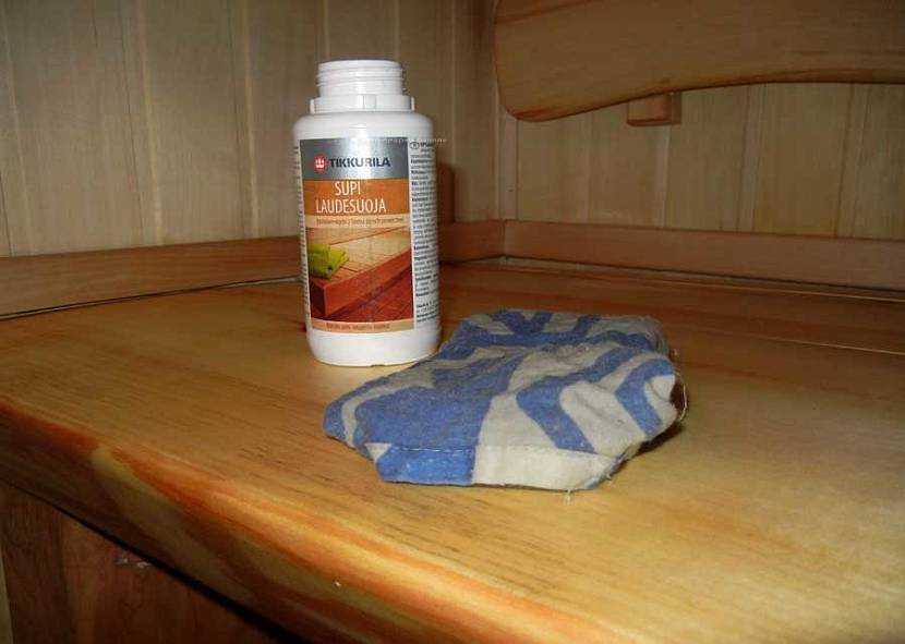 Места прямого контакта с кожей лучше обрабатывать составами, которые не образуют пленку. Но есть практичное решение этой проблемы. После обработки древесины нужно протопить печь. Это способствует глубокому проникновению состава. А излишний сухой остаток можно устранить с помощью мягкой ветоши.