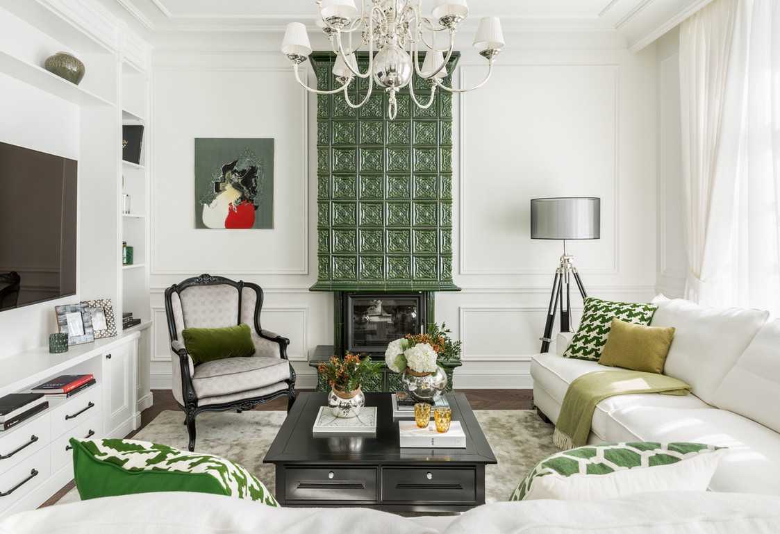 В качестве декора используют резьбу по камню и лепнину, при этом важно, чтобы площадь гостиной составляла не менее 25 квадратных метров. Кроме того, в таком помещение должно быть не менее двух окон, внутреннее пространство лучше оформить в светлой цветовой гамме, дополним аксессуарами с зеркалами и глянцевыми поверхностями