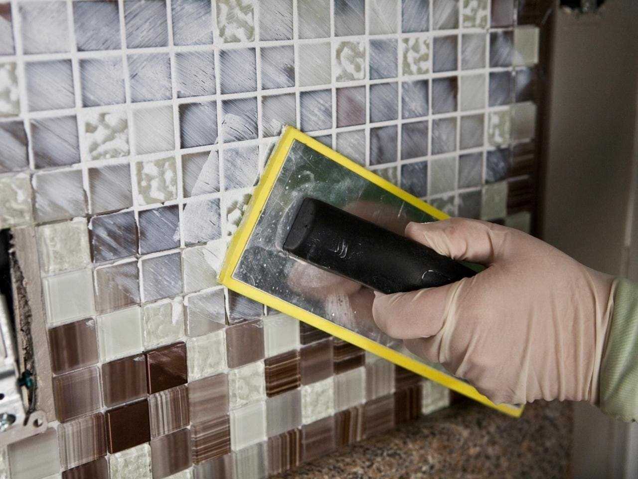 Недостаточно качественная затирка может легко испортить внешний вид мозаики. Чтобы этого не произошло, перед нанесением цветной или белой смеси надо очистить плиточную поверхность от пыли, убрать из швов клеевые потеки.