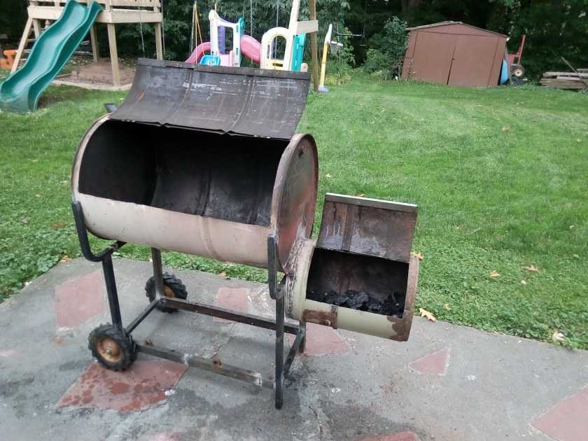 ● найдите кусок трубы или небольшую бочку из металла; ● положите находку на мангал; ● оборудуйте трубу решеткой; ● насыпьте опилок; ● герметично закройте трубу; ● разожгите огонь.