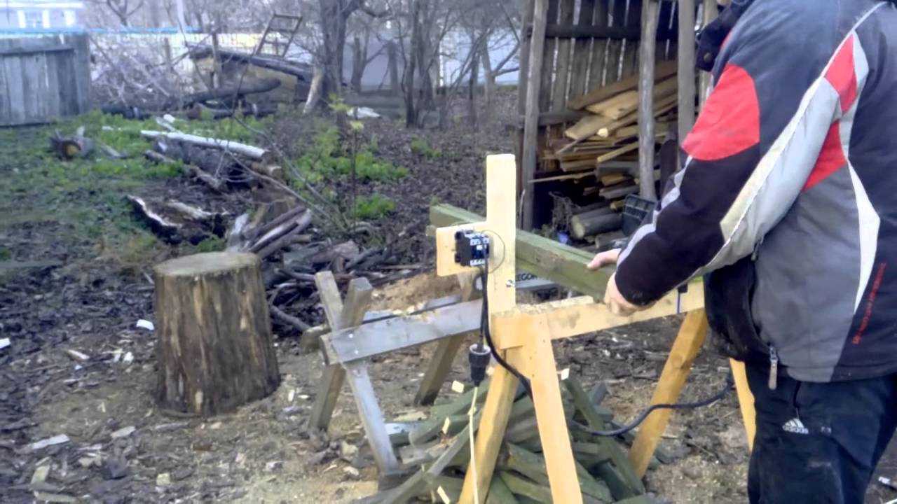 Пилить дрова цепной пилой на обычных, традиционных козлах не получится, так как инструмент может сломаться, если шина застрянет в распиле. Если отрезать куски бревна, выходящие за предел крестовин конструкции, то разрез будет долгим и нерациональным. Именно поэтому для заготовки электрическим инструментом разработаны специальные козлы для распиловки дров бензопилой. Самая простая конструкция для резки дров цепной пилой состоит из тяжелой основы и устойчивых ножек. Ствол дерева спиливают в местах его выхода за границы козел. Удерживать бревно в такой установке можно ногой.