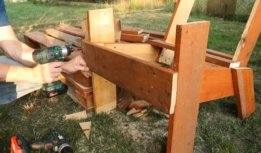 Деревянные каркасы – самые экологичные, не вызывают аллергии. Кресло из досок простоит долго, если древесина хорошего качества и подобрана правильно. Не стоит брать пиломатериал с наличием коры, трещин, а также имеющий нечеткую геометрию – все это приведет к растрескиванию и деформации готового изделия.