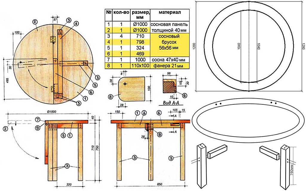 Когда все элементы будут готовы, можно приступать к сборке стола. Если предусмотрена более сложная конструкция, то нужно подготовить дополнительные детали и механизмы.