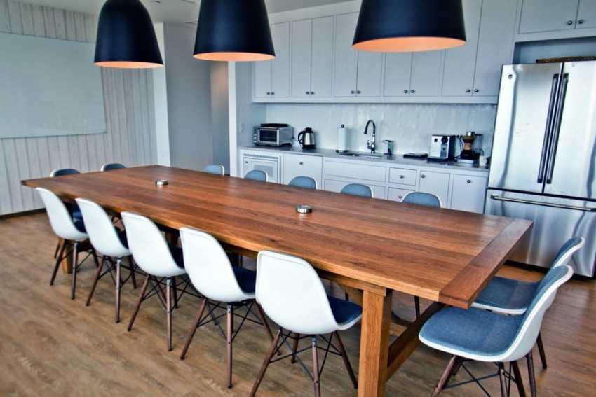 | Прямоугольный | Широко распространенный вариант. За ним может разместиться много людей. Его располагают как угодно – в центре, у стены, у окна |