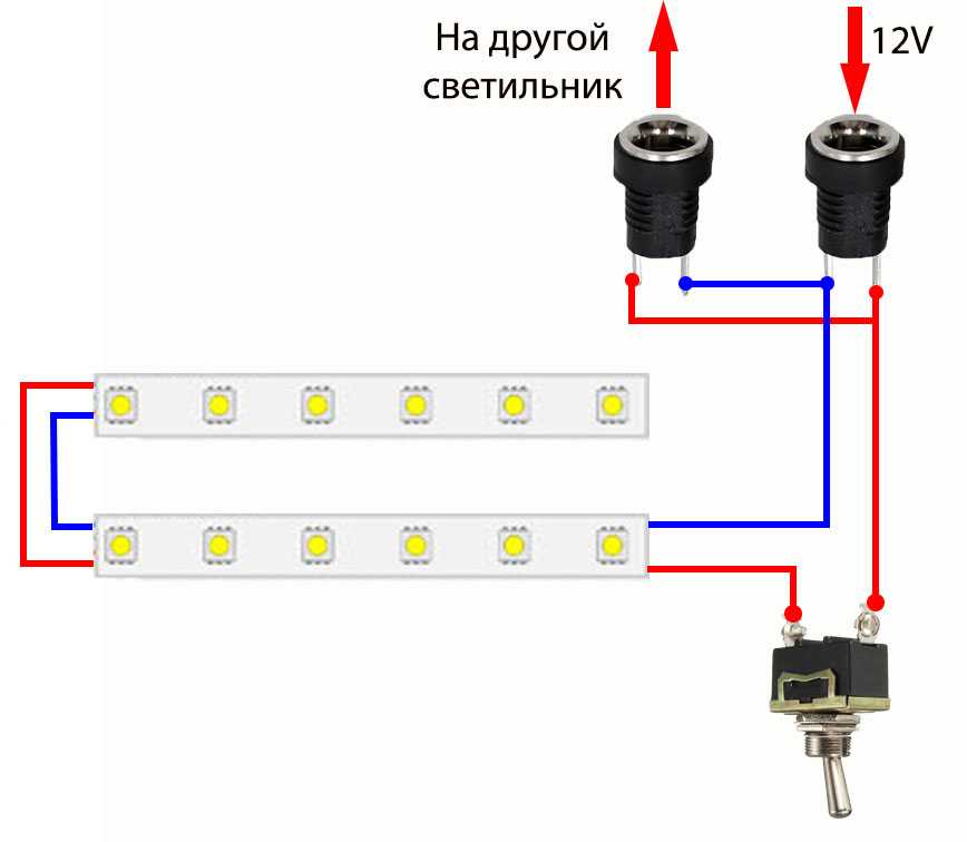 Особой разницы в подключении дополнительных лент нет. Однако есть пара нюансов, игнорировать которые не стоит. Во-первых, светодиодные ленты нельзя подключать последовательно, делая из них полосы, длиной более пяти метров. Такие действия приведут к перегреву и перегоранию дорожек, находящихся ближе к блоку питания вследствие повышенной нагрузки на них. Поэтому здесь подойдёт только параллельное подключение.