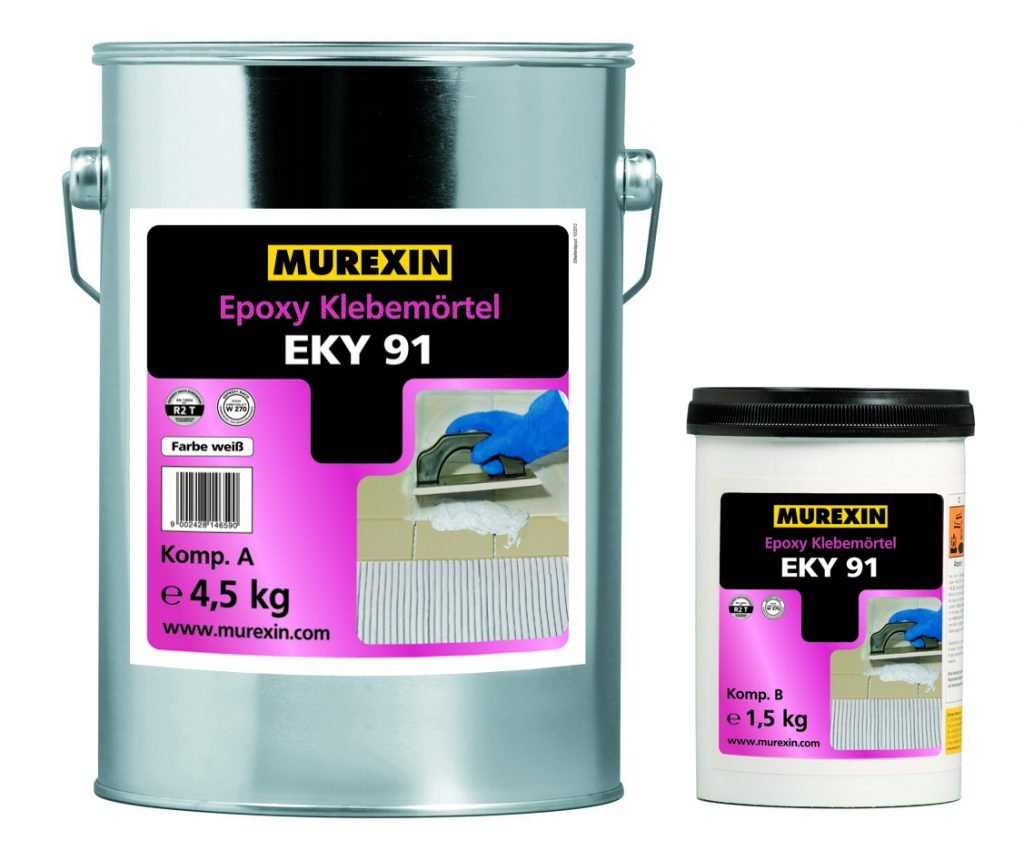 В составе эпоксидного клея имеется несколько составляющих. Это полимерные смолы с добавками и наполнителями, к которым добавляют органический катализатор. Такое средство обеспечивает очень прочное соединение поверхности и кафеля. Оно устойчиво к морозам, высокой влажности и резким температурным перепадам. Эпоксидный клей применяют в помещениях с высоким уровнем нагрузки (вокзалы, промышленные помещения, аэропорты).