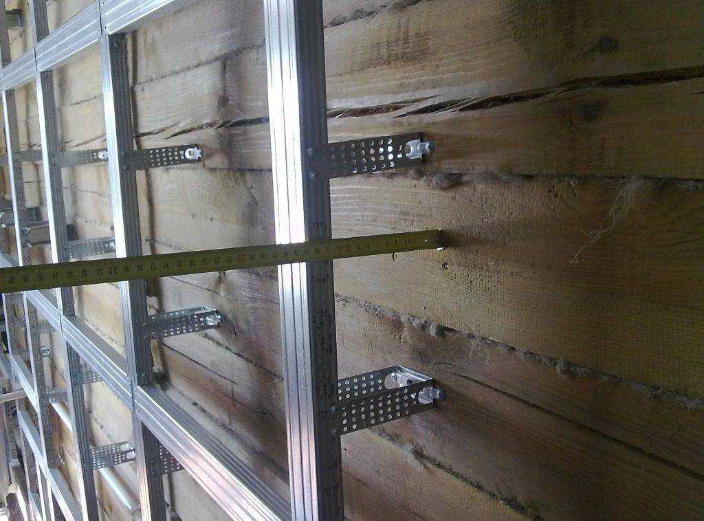 Монтаж каркасного основания и гипсокартона в деревянном доме