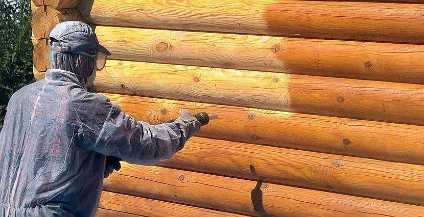 После окончания отделочных работ древесина обрабатывается финишными лакокрасящими изделиями.