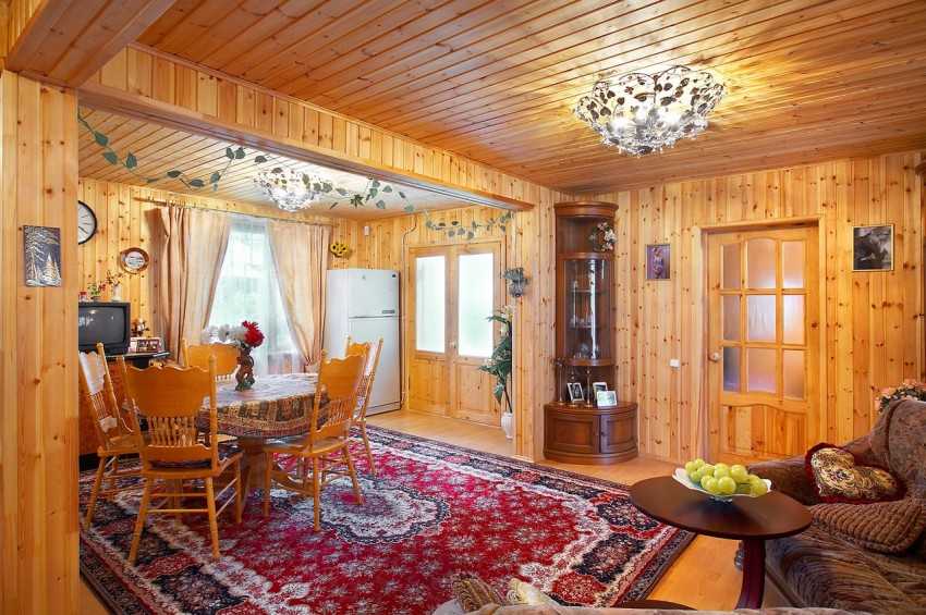 Обработка помещения деревянной вагонкой подходит под любой интерьер, любой комнаты. Прекрасно сочетается отделка вагонкой с другими, кардинально отличающимися материалами, используемыми в дизайне.