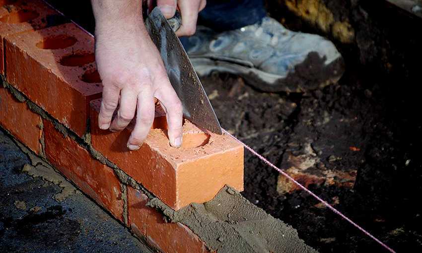 Сняв опалубку и дождавшись покуда бетон окрепнет, настает самый ответственный из этапов – кладка кирпичей. На плите наносят разметку, обозначив габариты будущей конструкции. Нужно еще раз приложить уровень и убедиться, что поверхность горизонтальная. В случае обнаружения существенных погрешностей, их устраняют.