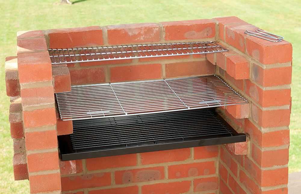 - решетки для углей (дров) и приготовляемой пищи. Место для углей может быть представлено сплошной плитой или решеткой, под которой располагается поддон. Это достаточно удобно – по мере прогорания углей зола ссыпается в поддон, откуда ее несложно убрать. Решетка для продуктов может быть одна или две-три;