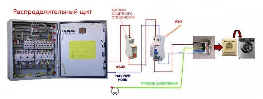 От заземленного квартирного электрощитка прокладывается заземляющий провод с наибольшим сечением по сравнению с другими проводниками, имеющимися в квартире. С целью предупреждения удара током при неисправности системы используется защитный автомат или устройство защитного отключения. Для качественного выполнения работ по обеспечению электрического питания рекомендуется пригласить специалиста.