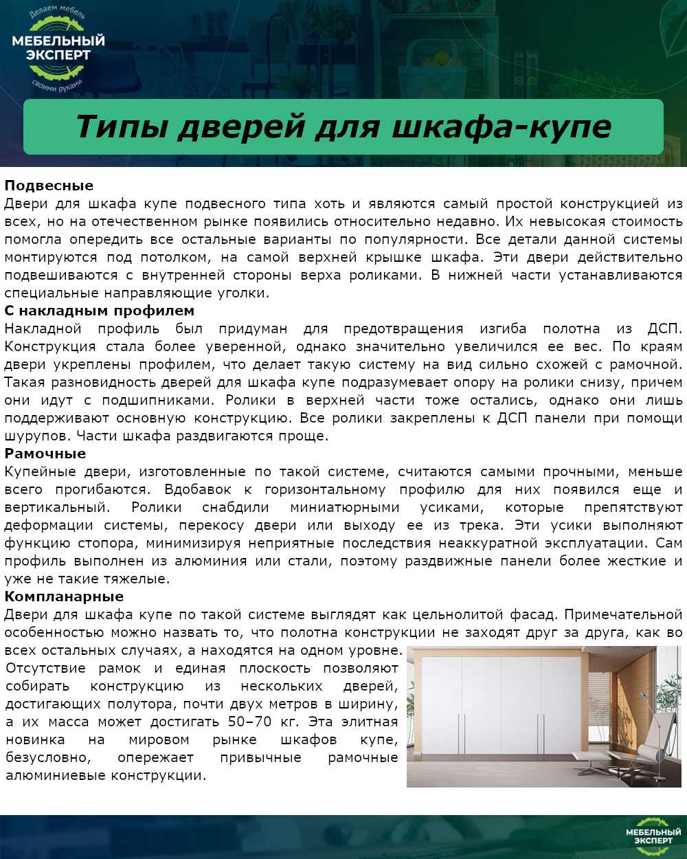 Типы дверей для шкафа-купе