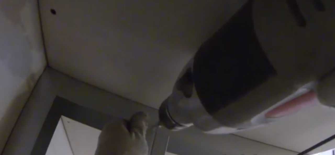 Шаг 10. На горизонтальную перемычку с внутренней стороны прикрепите гипсокартон. В процессе просверливания перемычки следите за тем, чтобы она не перекосилась.