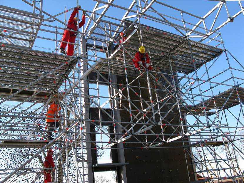 Монтаж профессиональных строительных лесовИсточник gridins.com