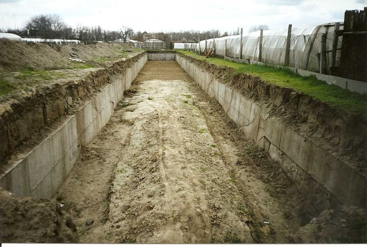 2. Стены бетонные, не менее 40 см, иные зимой сложатся, земля их выдавит. Стены устанавливаем или из бетонных блоков или заливаем бетоном, сделав опалубку.